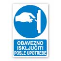Obavezno isključiti posle upotrebe