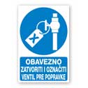Obavezno zatvoriti i označiti ventil pre popravke