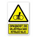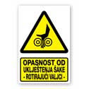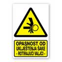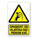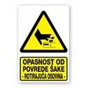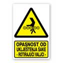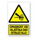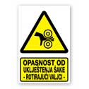 Opasnost od uklještenja šake - rotirajući valjci [materijal gura ruku u valjke]