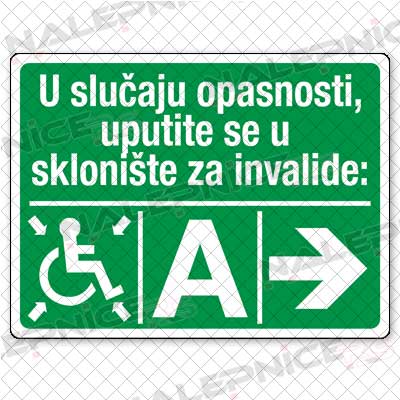 | U slučaju opasnosti uputite se u sklonište za invalide - slovo i strelica desno |