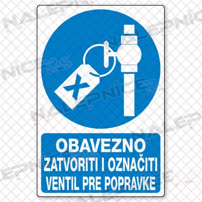| Obavezno zatvoriti i označiti ventil pre popravke |