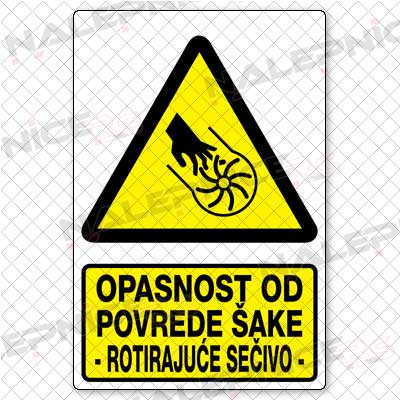| Opasnost od povrede šake - rotirajuće sečivo [elisa u kanalu] |