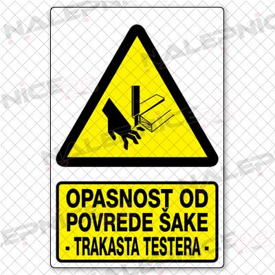 | Opasnost od povrede šake - trakasta testera |
