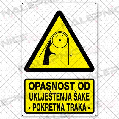 | Opasnost od uklještenja šake - pokretna traka [iznutra - odozdo] |