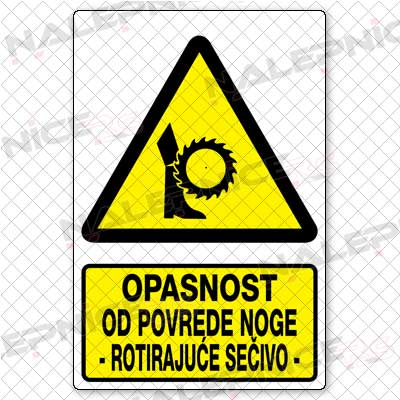 | Opasnost od povrede noge - rotirajuće sečivo [testera] |