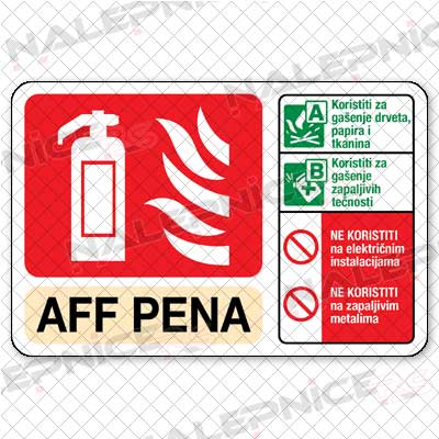 | Dozvoljeni tipovi požara - vrsta aparata - AFF Pena |