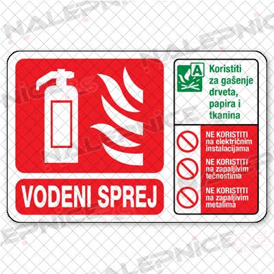 | Dozvoljeni tipovi požara - vrsta aparata - Vodeni sprej |