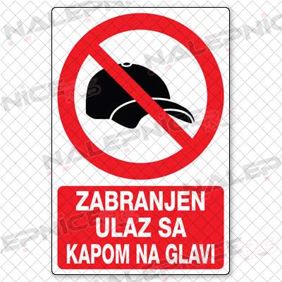 | Zabranjen ulaz sa kapom na glavi |